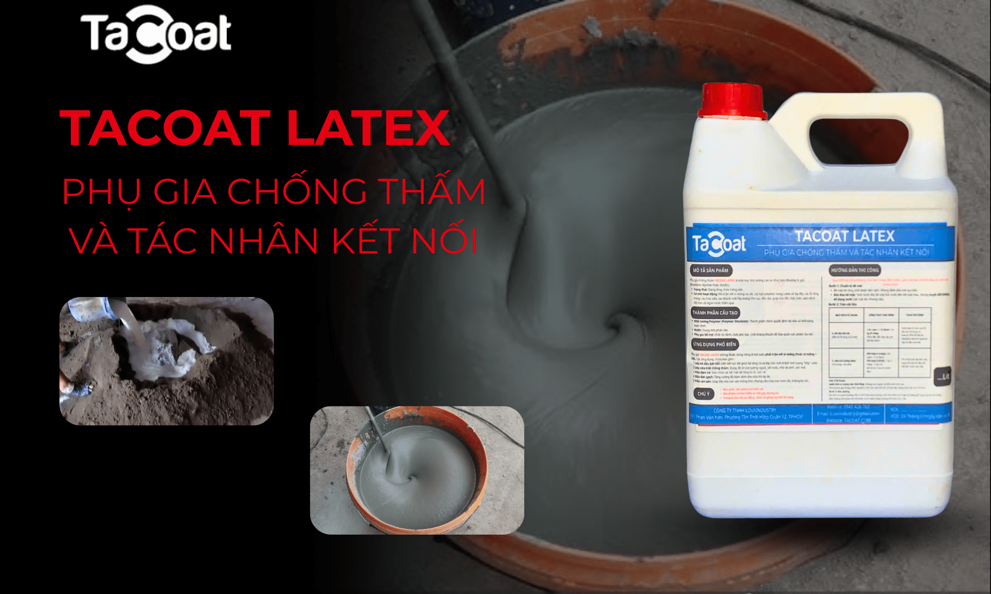 [1 Lit] Chống thấm tuyệt hảo, kháng mài mòn - Phụ Gia Chống Thấm Và Tác Nhân Kêt Nối TACOAT LATEX