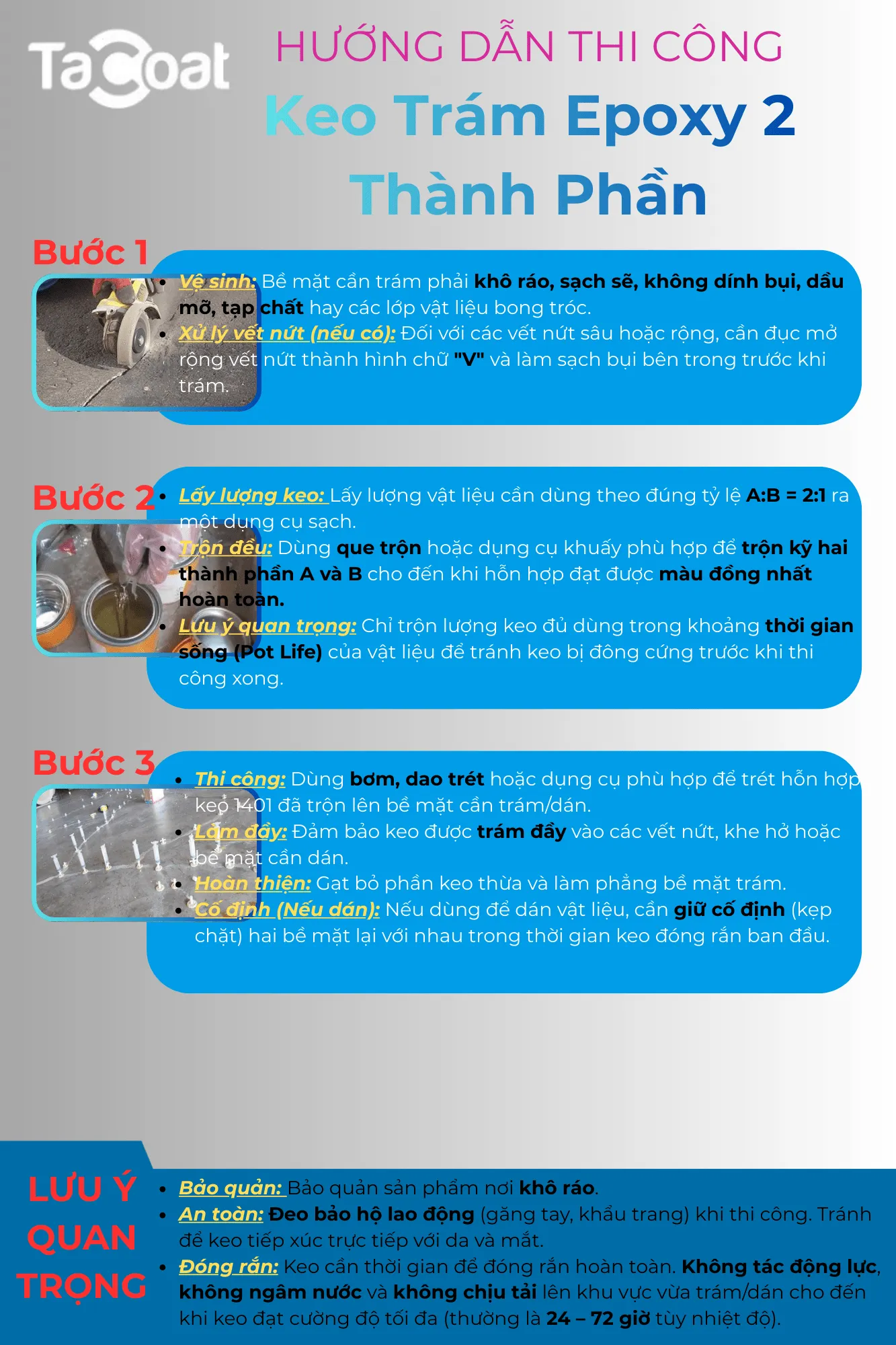 Lưu ý: Chỉ trộn một lượng vừa đủ để thi công trong thời gian sống của keo (thời gian keo chưa đóng rắn).