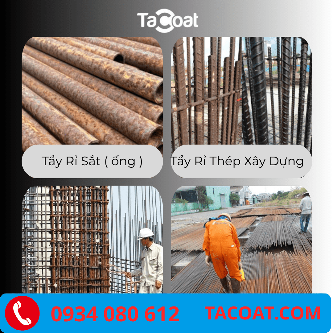 Tẩy Rỉ Sét Hiệu Quả: Loại bỏ triệt để các lớp rỉ sét, dầu mỡ, bụi bẩn, và cặn bám trên bề mặt thép, khôi phục bề mặt kim loại về trạng thái sạch sẽ.