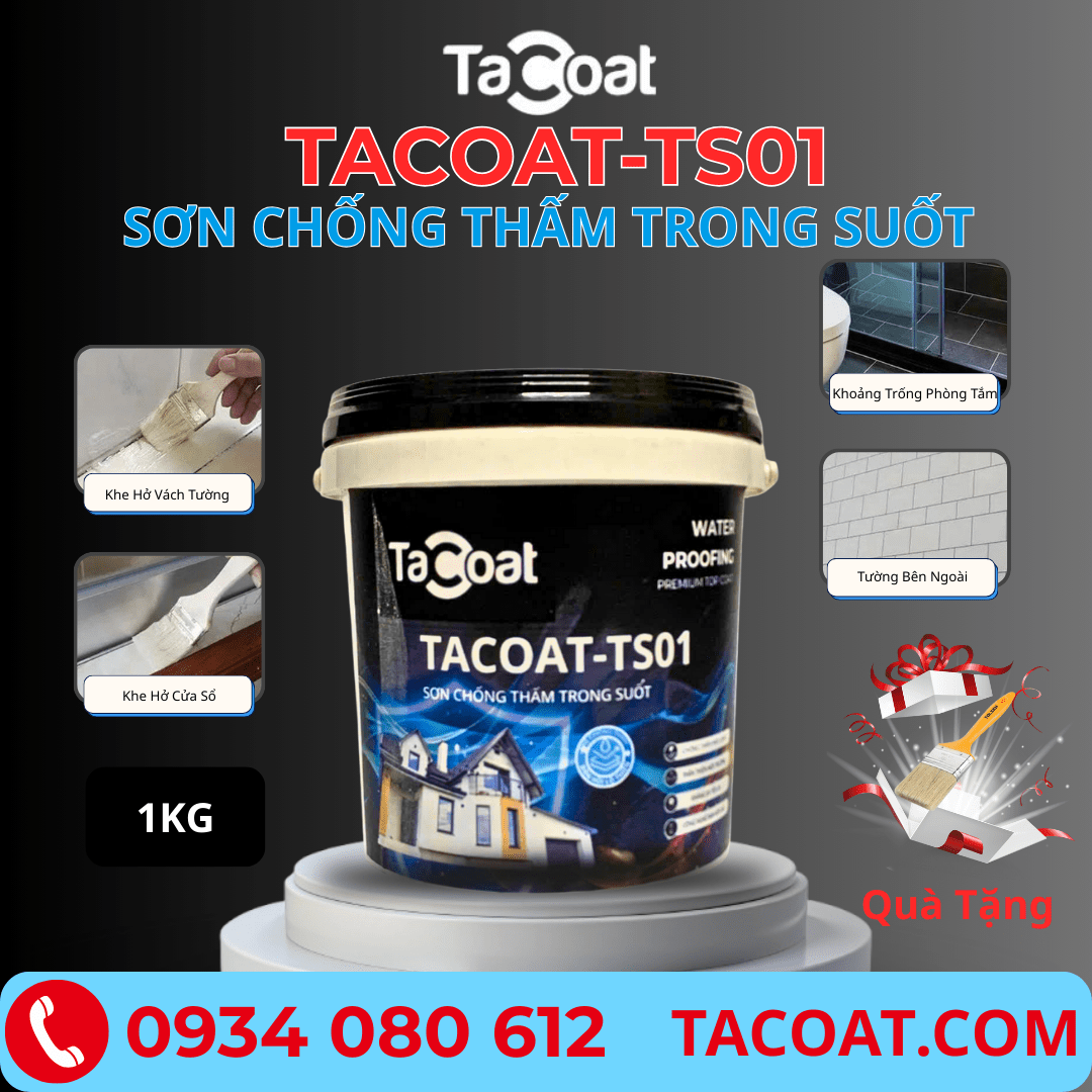 Sơn Chống Thấm Trong Suốt Chống Thấm TACOAT-TS01 - Sơn Chống Thấm Nền Gạch, Mạch Gạch, Nhà Vệ Sinh, Tường Nhà, Cửa Sổ, Gỗ Công Nghiệp